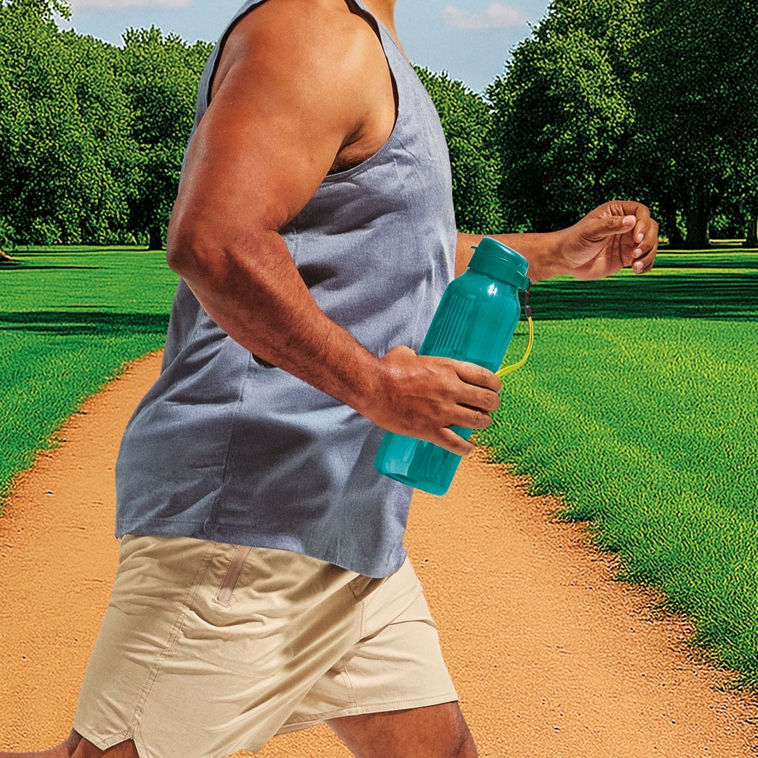 Design ergonômico para uso com uma mão: O formato elegante e slim, com ranhuras para melhor aderência, garante conforto mesmo em uma Garrafa de Água de grande capacidade.